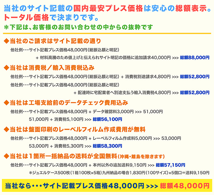 尚、ジュエルケースプレス、スリムケースプレス、マキシケースプレスにつきましては、